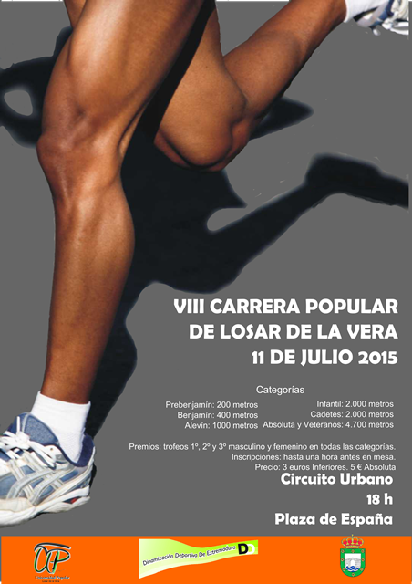 La VII edición de la Carrera Popular de Losar de la Vera se celebrará el sábado 11 de julio, a partir de las 18 h, sobre un circuito urbano que tiene su salida y meta en la Plaza de España de esta localidad verata.