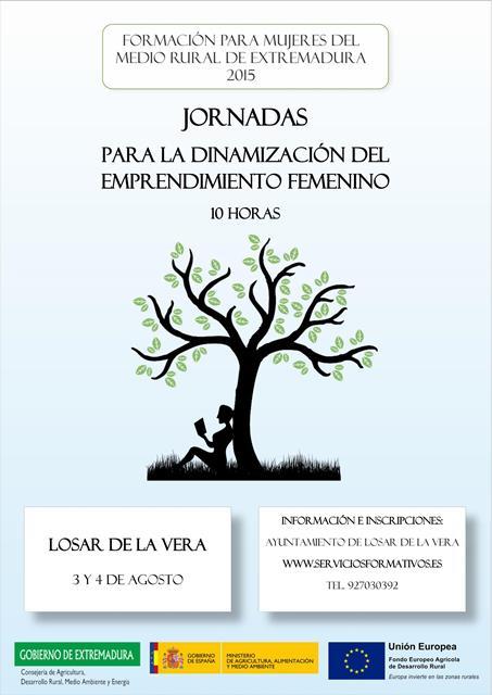 Las jornadas para la dinamización del emprendimiento femenino se celebrarán los dÃas 3 y 4 de agosto de 9 a 14 horas en la Casa de Cultura de Losar de la Vera, y se inscriben dentro de las acciones formativas dirigidas a las mujeres del medio rural de Extremadura.